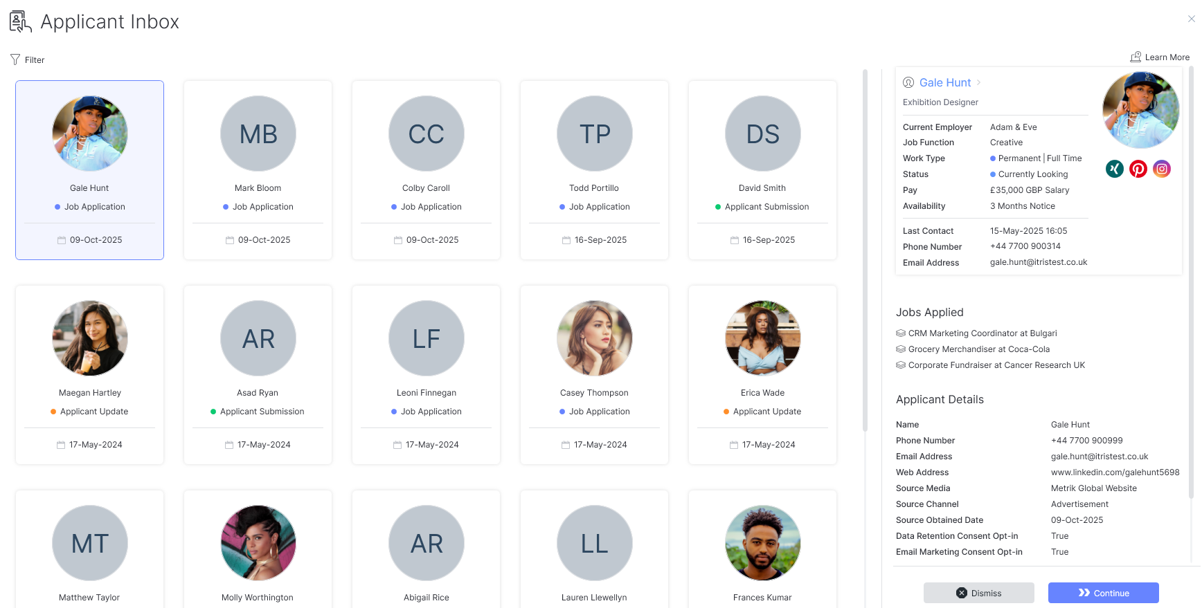 With the Applicant Inbox you will have control over adding those applicants to itris and updating existing records.
