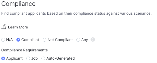 - Not compliant - Only applicants that are not compliant based on the criteria chosen will be included in the results.