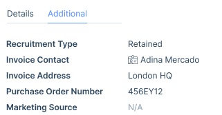On the Job Record the Recruitment Type (e.g. Contingency or Retained) is displayed under the Additional tab.