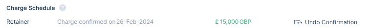 Once saved, this displays on the job record under the Charge Schedule with a tick.